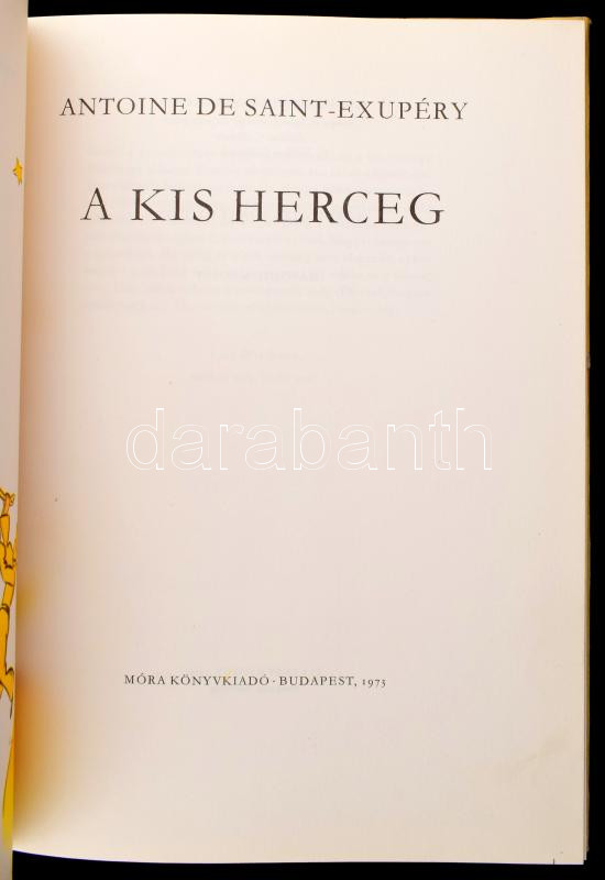 Antoine De Saint-Exupéry: A Kis Herceg. Bp., 1973, Móra, második kiadá... https://www.darabanth.com/hu/500-Gyorsarveres/500.0/Konyvek/Konyvek-Mesekonyvek-ifjusagi-irodalom~2000078/Antoine-De-Saint-Exupery-A-Kis-Herceg-Bp-1973-Mora-masodik-kiadas-Kartonalt-papirkote~II3405685
