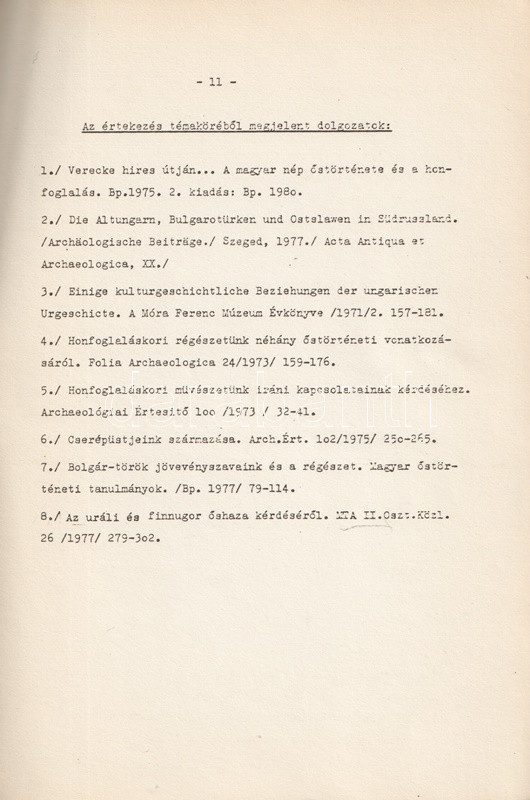 Budapest, 1980. [Szerző - Nyomda nélkül]. 11 + [1] p. Egyetlen kiadás.