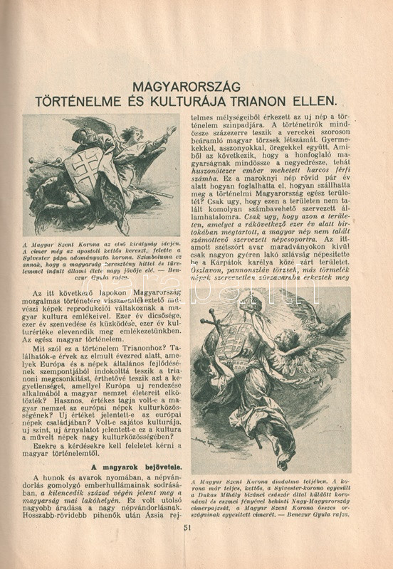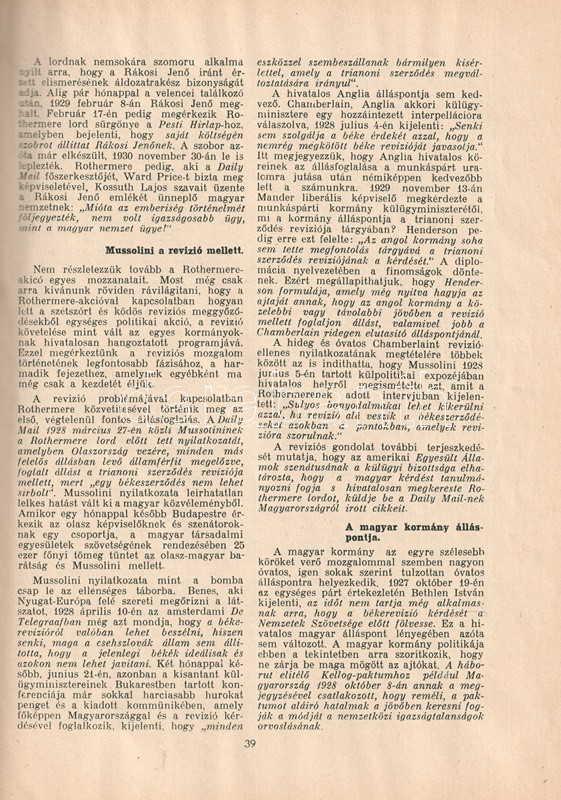A mű szerepel az Ideiglenes Nemzeti Kormány által 1945-ben kiadott, tiltott könyvek listáján. A Légrády Testvérek tulajdonában levő konzervatív hírlap (1878-1944) a korszak egyik legnépszerűbb napilapjaként az első világháborúban hazafias irányvonalat képviselt, a főszerkesztő, Légrády Ottó pedig a kezdetektől a trianoni békediktátum harcos ellenfele: már a béketárgyalások idején is idegen nyelvű kiadványokkal kísérelte meg meggyőzni a döntéshozókat Magyarország területi integritásának fontosságáról. A Pesti Hírlap a Horthy-korszakban kiemelten foglalkozott a területi revíziót pártoló külföldi véleményvezérekkel, a laptulajdonos ezt a különszámot a Lord Rothermere brit főrendhez hasonló magyarbarát hatalmasságoknak ajánlotta. Az oldalszámozáson belül gazdag szövegközti és egész oldalas rajzokkal, felvételekkel, infografikákkal gazdagon illusztrált emlékszám a "Vádirat Trianon ellen!" című történelmi áttekintés mellett igen gazdag országismertető anyagot közöl, melynek szöveg- és képanyaga a szerkesztőség reményei szerint hathatósan érvel a magyarság civilizációteremtő képessége mellett, természeti, építészeti, népi örökségünk közreadásával, gazdasági, tudományos, művészeti és kulturális képességeink legjavának bemutatásával. A mű számos oldala színesen nyomott: politikusportrék sokaságában tallózhatunk (Horthy Miklós, Mussolini, Lord Rothermere, Teleki Pál, Apponyi Albert, Tisza István, Rákosi Jenő, Herczeg Ferenc), a politikusportrék mellett Szinyei Merse Pál, Csók István, Glatz Oszkár, Deák Ébner Lajos egy-egy zsánerképének reprodukciója is gazdagítja az albumunkat, a történelmi Magyarország teljes területéről hozott képanyag mellett. A kötet végén infografikákkal tűzdelt érvelés a trianoni békediktátum igazságtalansága és a revízió szükségessége mellett.