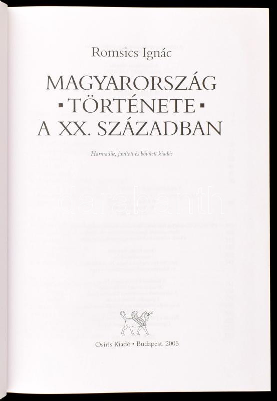 Romsics Ignác: Magyarország története a XX. században. Bp., 2005, Osiris, 668 p. Harmadik, javított és bővített kiadás. Kiadói kartonált papírkötés, jó állapotban. .