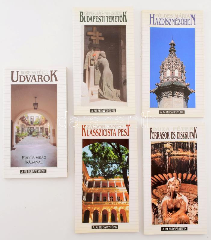 A Mi Budapestünk sorozat 5 kötete: Korniss Péter: Udvarok.; Zádor Anna: Klasszicista Pest.; Buza Péter: Források és díszkutak.; Földes Mária: Házdísznézőben.; Csernus-Lukács - Triff - Zsigmond: Budapesti temetők. Bp., 1993-1999, Városháza. Kiadói papírkötés.
