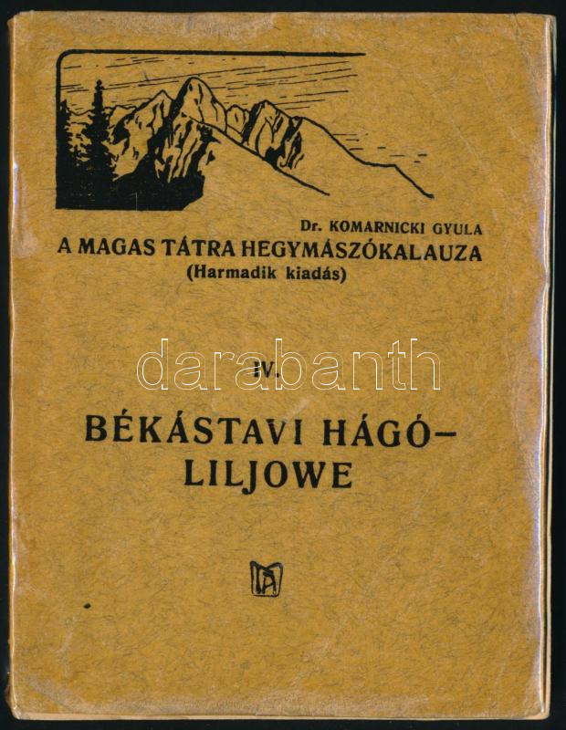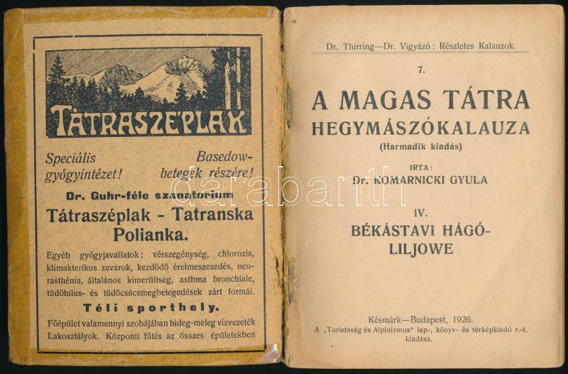 Dr. Komarnicki Gyula: A Magas Tátra hegymászókalauza IV. kötet: Békástavi hágó - Liljowe. Részletes kalauzok. Késmárk-Bp., 1926, Turistaság és Alpinizmus. Harmadik kiadás. Kiadói papírkötésben, laminálva