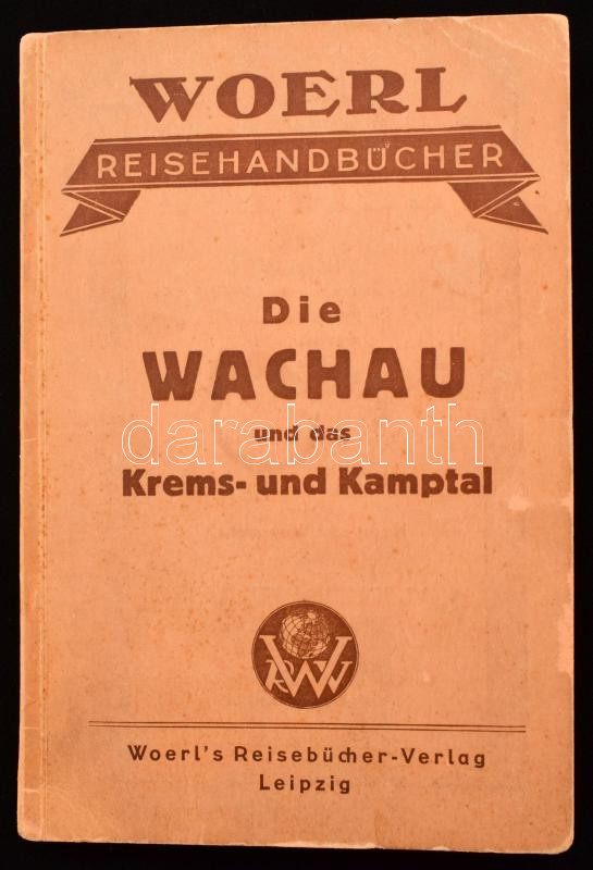 Illustrierter Führer durch die Wachau das Kremstal und untere Kamptal. Woerl's Reisehanbücher. Leipzig,én., Woerl's Reisebücher-Verlag, 1 (kihajtható térkép) t. + 120 p. Német nyelven. Fekete-fehér fotókkal illusztrált. Korabeli reklámokkal. Kiadói papírkötés, kissé kopott borítóval, a térképen kis szakadással.