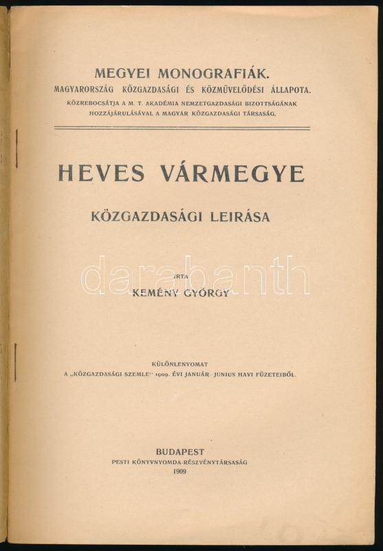 Kemény György: Heves vármegye közgazdasági leírása. Bp. 1909. Pesti Kö... https://www.darabanth.com/hu/500-Gyorsarveres/500.0/Konyvek/Konyvek-Utazas-helytortenet~2000061/Kemeny-Gyorgy-Heves-varmegye-kozgazdasagi-leirasa-Bp-1909-Pesti-Konyvnyomda-Rt-48-p-FC5~II3407546