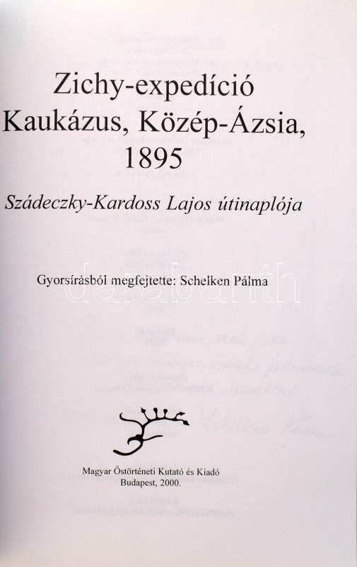 Leírás: Szádeczky-Kardoss Lajos: Zichy-expedíció Kaukázus, Közép-Ázsia, 1895. - - útinaplója. Gyorsírásból megfejtette Schelken Pálma. A megfejtő, Schelken Pálma által DEDIKÁLT példány! Bp., 2000, Magyar Őstörténeti Kutató és Kiadó, 304 p. Fekete-fehér képanyaggal illusztrált. Kiadói papírkötés.