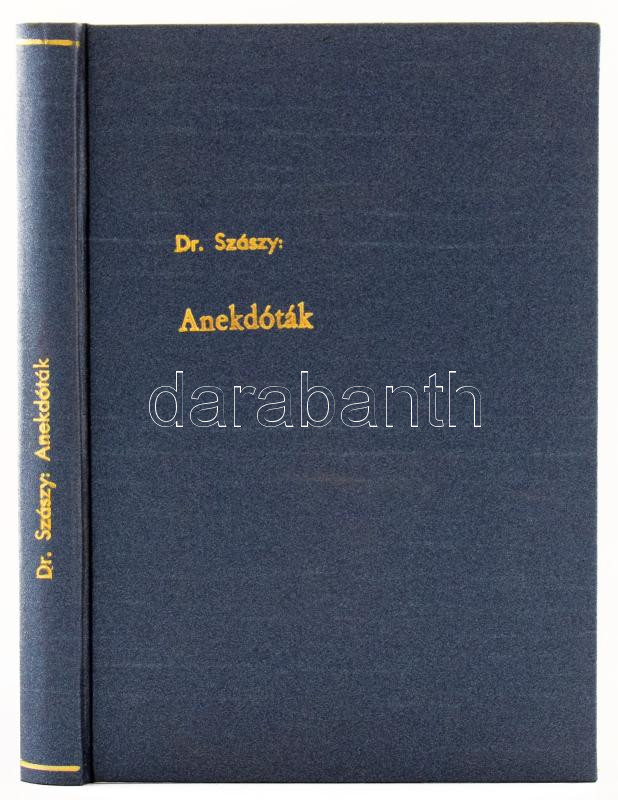 Szász István: Bácsmegyei anekdóták. Óbecse, 1909, Lévai Lajos, 124+3 p. Átkötött modern egészvászon-kötés, javított címlappal és kötéssel, a címlapon bélyegzéssel.