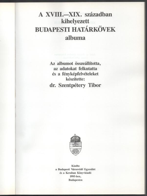 dr. Szentpétery Tibor: A XVIII.-XIX. században kihelyezett Budapesti Határkövek albuma. Bp., 1995, Budapesti Városvédő Egyesület és a Keraban Könyvkiadó. Kiadói papírkötés, jó állapotban.