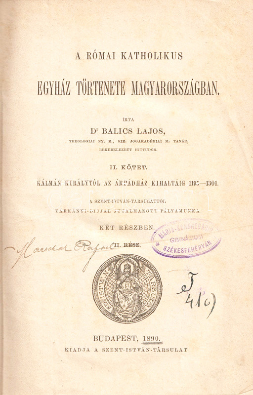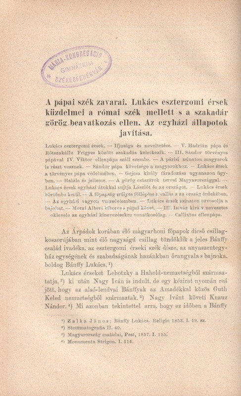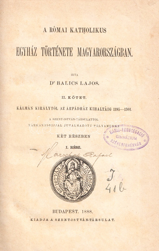 Poss.: A székesfehérvári Mária-kongregáció gimnáziumi könyvtára.