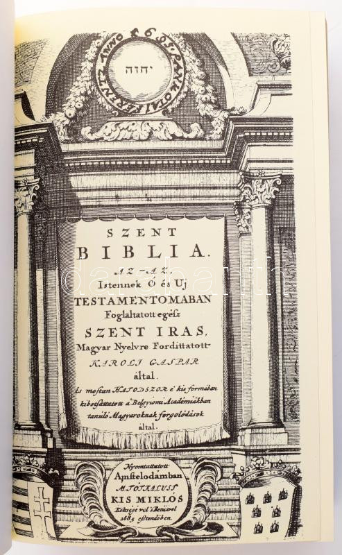 M. Tótfalusi Kis Miklós Aranyas Bibliája. Szent Biblia, Azaz Istennek Ó és Új Testamentomában Foglaltatott egész Szent Írás. Ford.: Károli Gáspár. Bp., 1989, Európa. Az 1685-ben Amszterdamban, Misztótfalusi Kis Miklós által nyomtatott Biblia hasonmás kiadása, kísérőfüzettel. Kiadói aranyozott műbőr-kötés, aranyozott lapélekkel, kissé kopott kiadói kartontokban.
