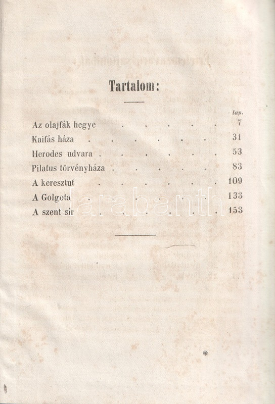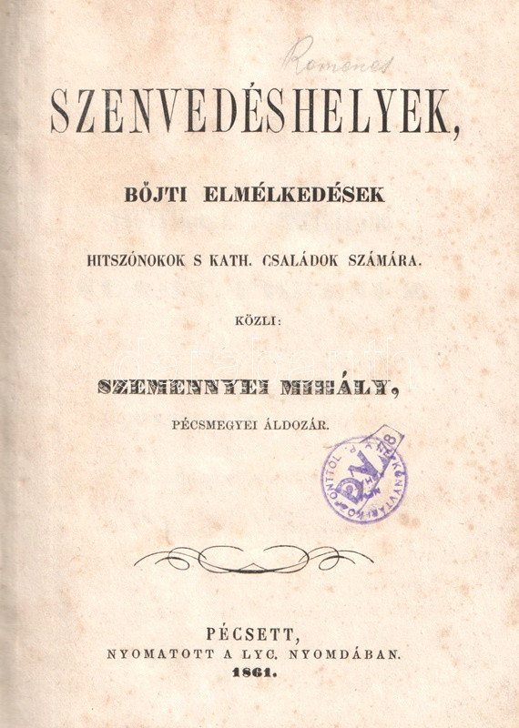 Pécsett, 1861. Nyomatott a Lyceum nyomdában. VI + [7]-168 + [2] p. Egyetlen kiadás.
