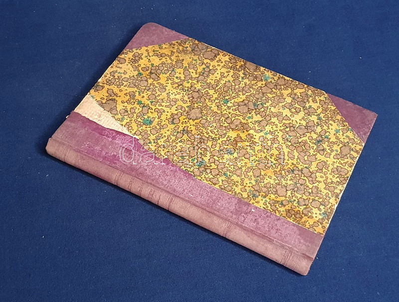 Gerincén feliratozott, enyhén kopott, kissé sérült korabeli félvászon kötésben, márványmintás festésű lapszélekkel.