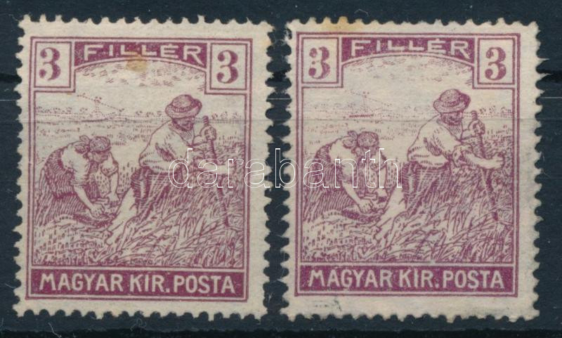 Leírás: 1916 Arató 3f 2 db bélyeg festékhiánnyal az értékszámban (rozsda / stain)