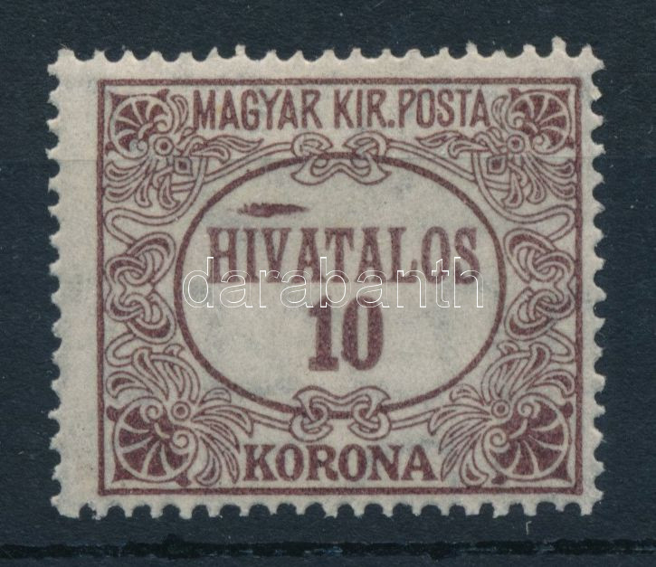 Leírás: 1921/1924 Hivatalos 10K bélyeg festékcsíkkal