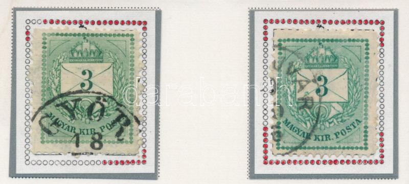 Leírás: 1874 2 db 3kr durva gyöngyjavítással (ex Orbán, Sebestyén aranyérmes kiállítási anyagból)