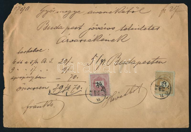 Leírás: 1888 12kr és 15kr pénzes levélen "GYŐR" - Budapest