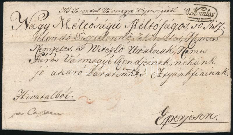 1818 Ex offo levél "B.Komlos" - Eperjes