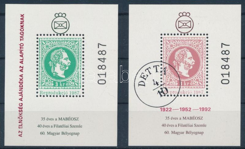 Leírás: 1987 35 éves a MABÉOSZ emlékívpár azonos sorszámmal, a zöld emlékív "AZ ELNÖKSÉG AJÁNDÉKA AZ ALAPÍTÓ TAGOKNAK" felirattal