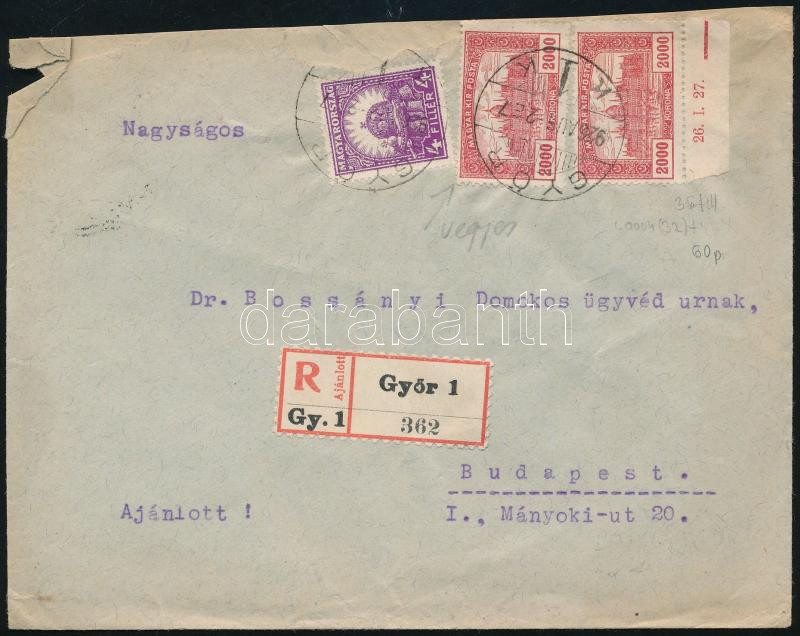 Leírás: 1926 Ajánlott levél 4000K és 4f vegyes bérmentesítéssel