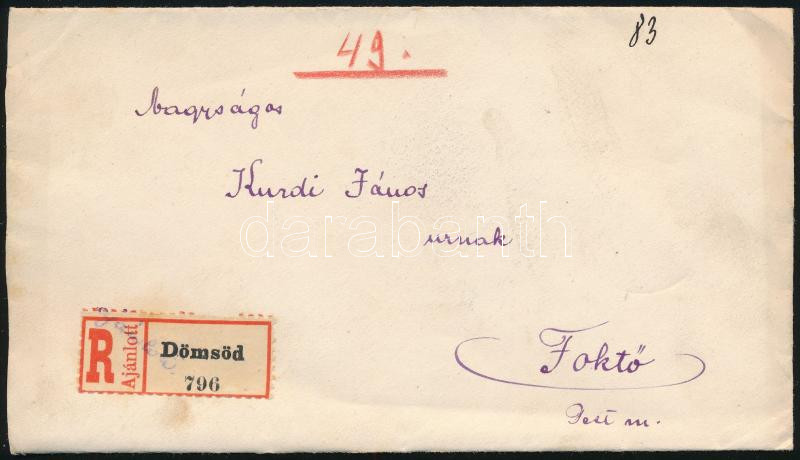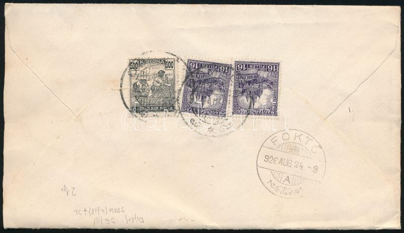 Leírás: 1926 Ajánlott levél Dömsödről vegyes 500K és 32f bérmentesítéssel
