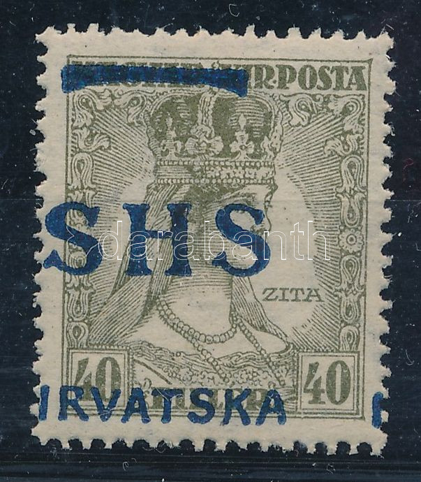 Leírás: SHS 1918 Zita 40f eltérő Arató típusú, eltolódott felülnyomással