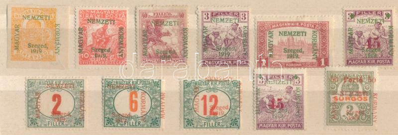Leírás: Szeged 1919 11 db bélyeg, Bodor vizsgálójellel