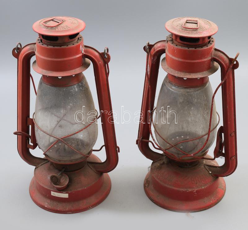 Leírás: 2 darab viharlámpa, jelzett, kopással, m: 30,5 cm
