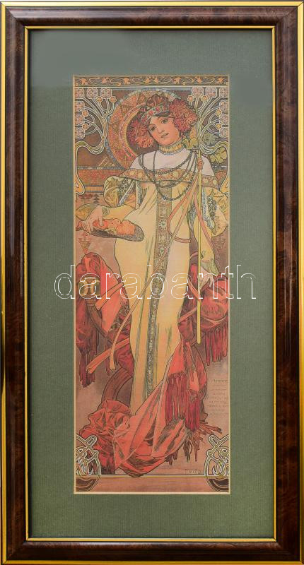 Leírás: Dekoratív Mucha nyomat, üvegezett keretben, 26x9 cm, 35x17 cm