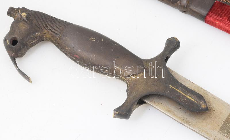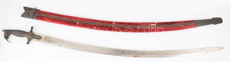 Leírás: Indiai díszkard, hüvelyében, kopott, h: 90 cm