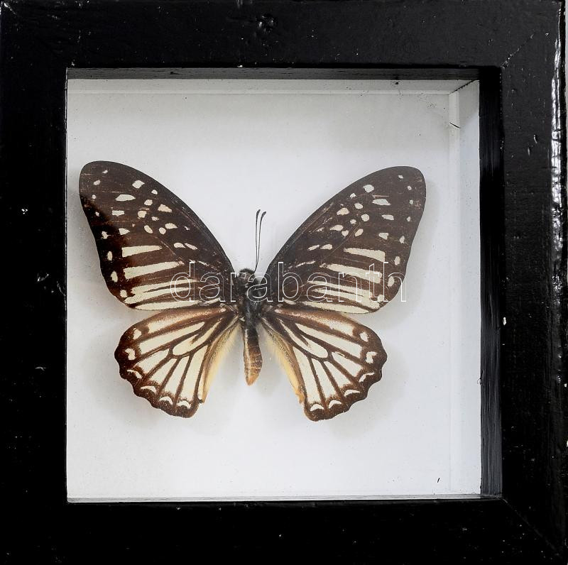 Leírás: Preparált lepke, akasztható üvegezett vitrinben, 13x15 cm