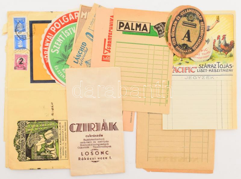 Leírás: 14 darabos reklám tétel, számolócédulák, címkék, stb.