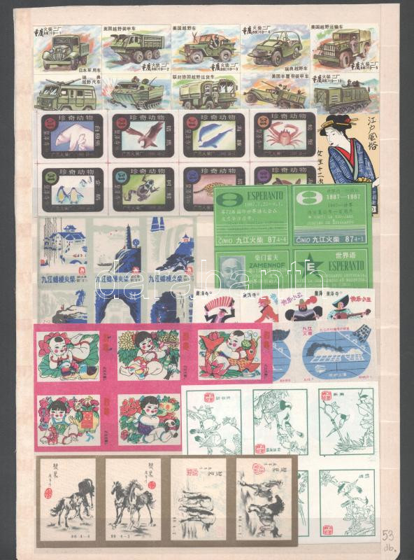 Leírás: 53 db kínai gyufacímke klf témákkal