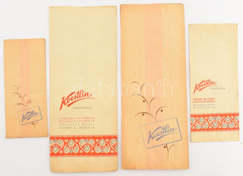 Koestlin cukorka, bonbon négyféle papírzacskó, h: 29 cm aaltt https://www.darabanth.com/hu/500-Gyorsarveres/500.0/Mutargy-papirregiseg-egyeb/Reklam~1000006/Koestlin-cukorka-bonbon-negyfele-papirzacsko-h-29-cm-aaltt~II3408002