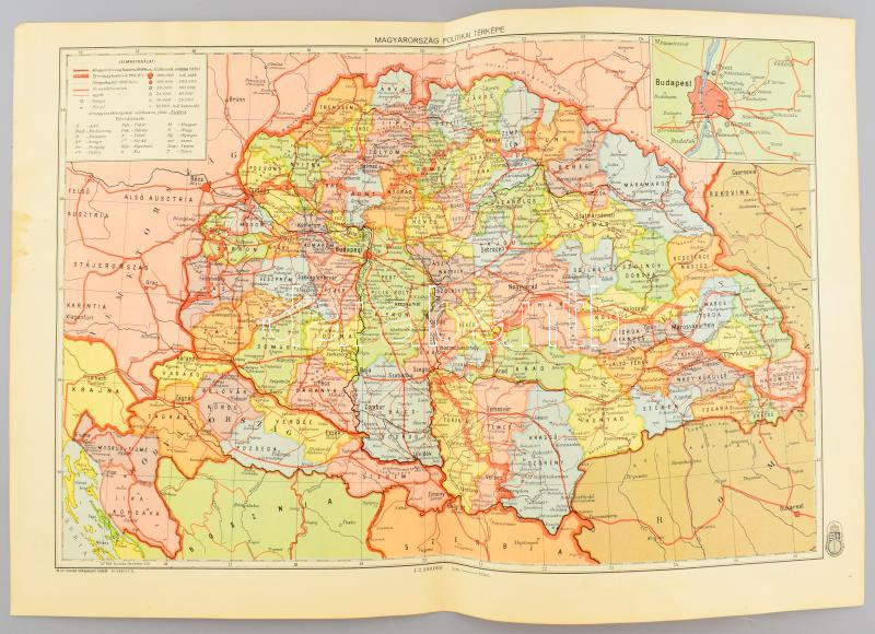 1942 Nagy-Magyarország politikai térképe / hegy- és vízrajzi térképe, kétoldalas, 1 : 2.500.000, M. Kir. Honvéd Térképészeti Intézet,szép állapotban , 29x43 cm