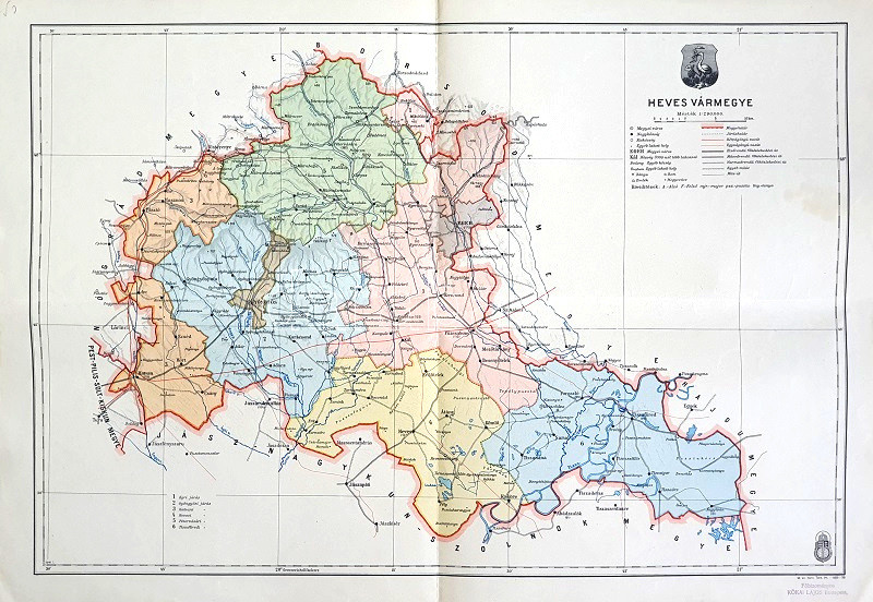 [Térkép] Heves vármegye térképe. Mérték: 1:290,000. (1941).