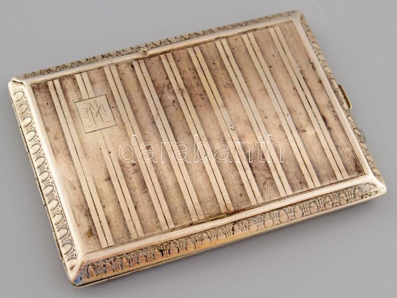 Leírás: Ezüst (Ag) cigaretta tárca, díszítéssel 117 g 11x8 cm