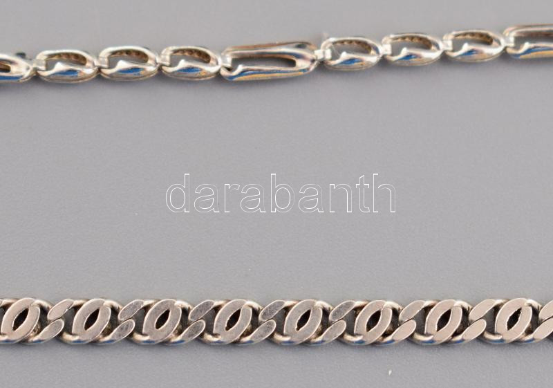 Leírás: Ezüst (Ag) duplaszemes és áttört mintás karkötő, 2 db, jelzett, h: 19 és 21 cm, nettó: 6,2 g