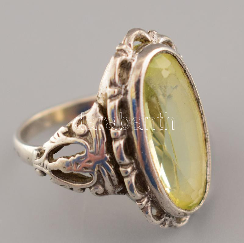 Ezüst (Ag) zöld köves gyűrű, jelzett, méret: 50, bruttó: 8,2 g https://www.darabanth.com/hu/500-Gyorsarveres/500.0/Nemesfem-disztargyak-ekszerek-dragakovek/Nemesfem-disztargyak-ekszerek-dragakovek~1000016/Ezust-Ag-zold-koves-gyuru-jelzett-meret-50-brutto-8-2-g~II3404228