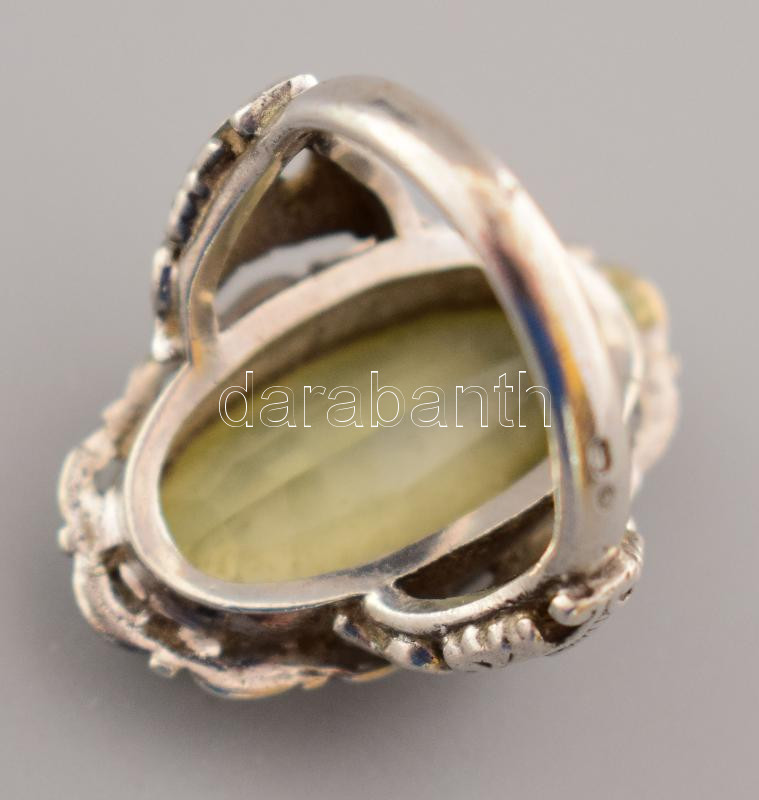 Leírás: Ezüst (Ag) zöld köves gyűrű, jelzett, méret: 50, bruttó: 8,2 g