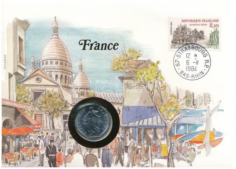 Franciaország 1979. 2Fr felbélyegzett borítékban, bélyegzéssel, német nyelvű leírással T:UNC,AU France 1979. 2 Francs in envelope with stamp and cancellation, with German description C:UNC,AU