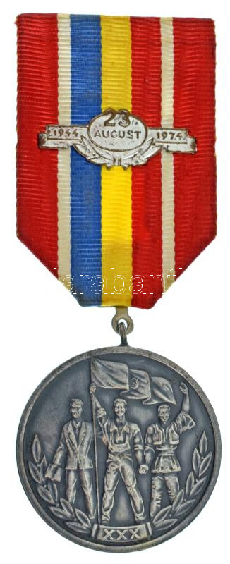 Románia 1974. "For the 30th Anniversary of the Liberation" silver patinated decoration on ribbon C:XF