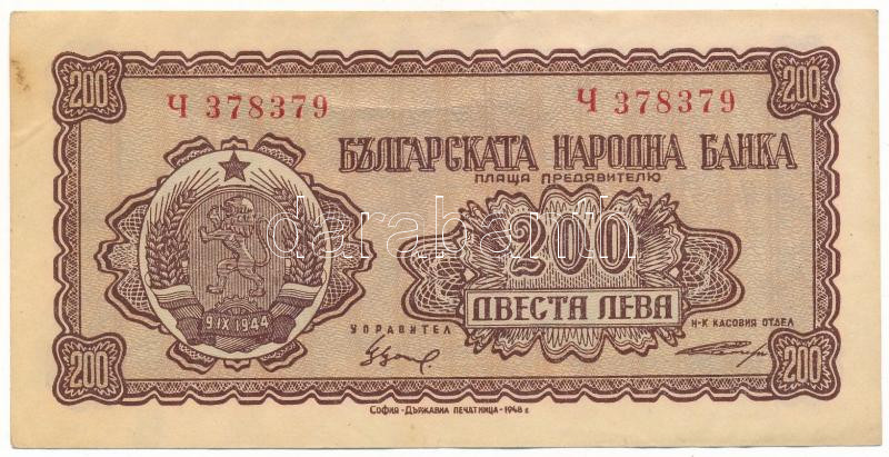 Bulgaria 194... https://www.darabanth.com/hu/500-Gyorsarveres/500.0/Numizmatika/Kulfoldi-bankjegyek~1500061/Bulgaria-1948-200L-Cs-378379-TF-eros-papir3Cbr-3E-Bulgaria-1948-200-Leva-Ch-378379-CF-str~II3411440