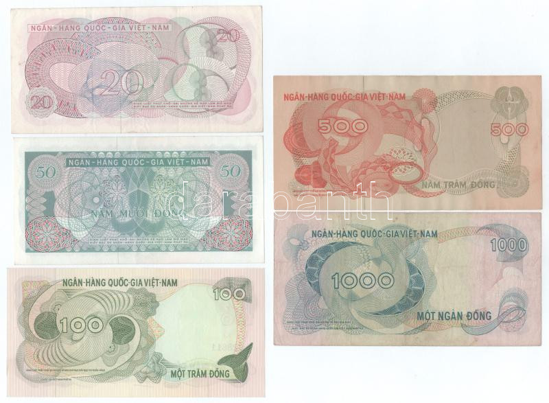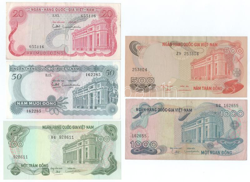 Dél-Vietnám DN(1969) 20D + 50D + DN(1970) 100D + 500D + DN(1971) 1000D... https://www.darabanth.com/hu/500-Gyorsarveres/500.0/Numizmatika/Kulfoldi-bankjegyek~1500061/Del-Vietnam-DN1969-20D-plus-50D-plus-DN1970-100D-plus-500D-plus-DN1971-1000D-TXF-F-egyiken-tuzogepl~II3402544