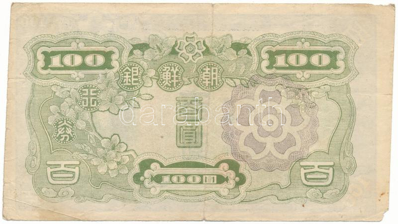 Korea (a Japán Birodalom részeként) DN(1947) 100Y / 100W "48A" T:VG, kis sarokhiány