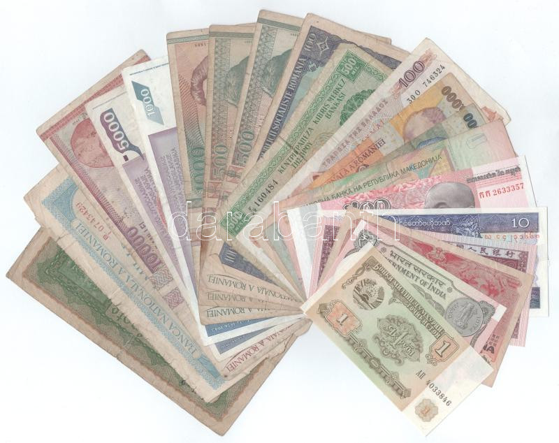Leírás: Vegyes, 20db-os külföldi bankjegyből álló tétel T:F,VG, közte 5db AU