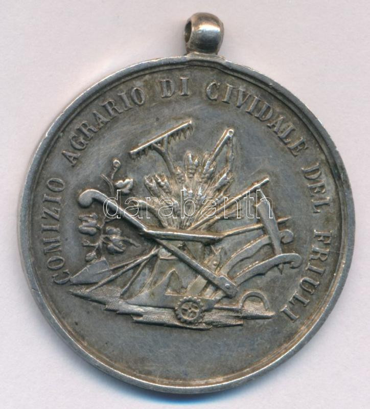 Olaszország DN~(1930-1940) Friuli Város Mezőgazdasági Tanácsa "Comizio Agrario di Civididale del Friuli" kétoldalas, jelzetlen Ag emlékérem füllel (11,04g/0.800/36mm) T:XF, patina