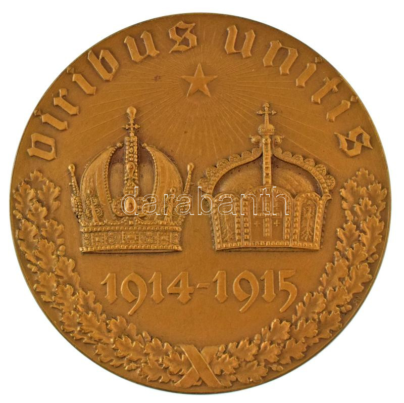 Osztrák-Magyar Monarchia 1915. "Gott mit uns / Viribus unitis 1914-1915" Ferenc Józsefet és II. Vilmost ábrázoló, kétoldalas bronz emlékérem. Szign.: Rudolf Neuberger (97,53g/61,5mm) T:AU