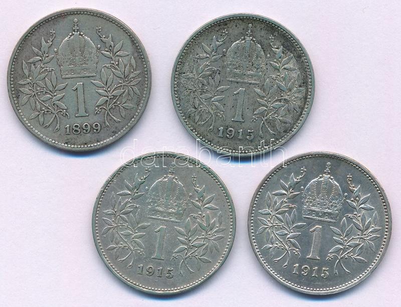Leírás: Ausztria 1899-1915. 1K Ag "Ferenc József" (4db, 2xklf) T:XF,VF