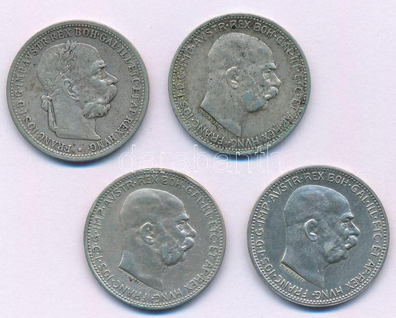 Austria 1899-1915. 1 Corona Ag "Franz Joseph" (4pcs, 2xdiff) C:XF,VF