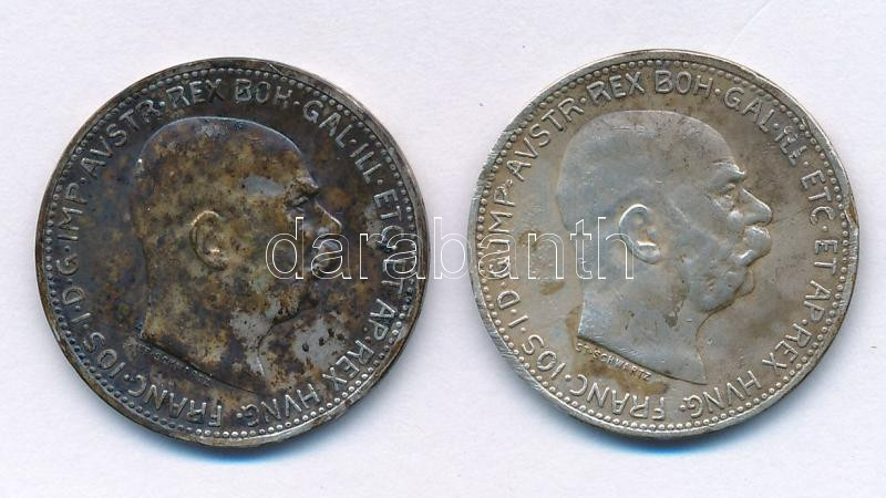 Leírás: Ausztria 1912-1913. 1K Ag "Ferenc József" (2xklf) T:XF,VF patina