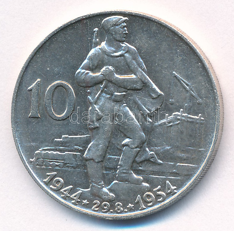 Csehszlovákia 1954. 10K Ag "A szlovák felkelés 10. évfordulója" T:AU Czechoslovakia 1954. 10 Korun Ag "10th anniversary of the Slovakian Uprising" C:AU Krause KM#40